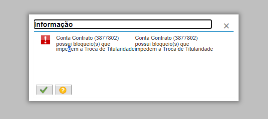 Olá, boa tarde!Poderia realizar retirada de bloqueio judicial constante em troca de titularPF: 3877802CASO: 631386194Agradeço a colaboração!