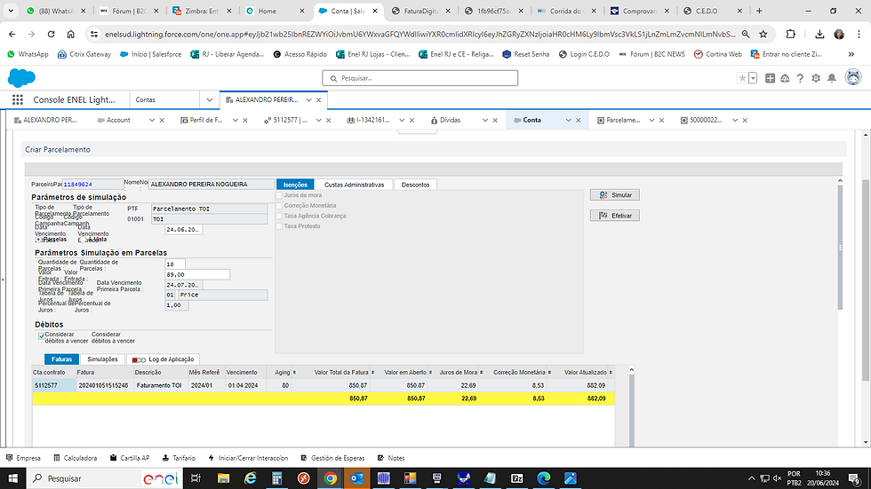 Prezados, bom dia. Poderiam nos ajudar com um caso de parcelamento, onde foi solicitado no cod 010. Porém o mesmo já possui um parcelamento de toi no mesmo cod (ID Parcelamento500000222309). Teriam possibilidade de nos ajudar, pois o mesmo só possui um pf em seu nome e se encontra sem energia no atual momento. ALEXANDRO PEREIRA NOGUEIRA